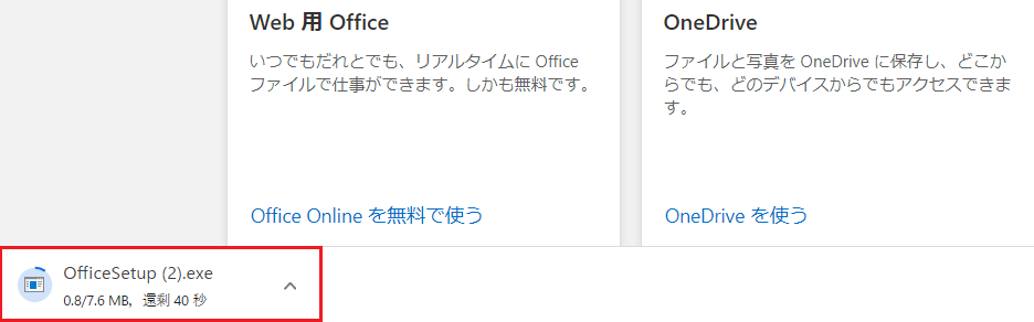先ほどダウンロードしたOffice 2021のexeファイルをダブルクリックしましょう。