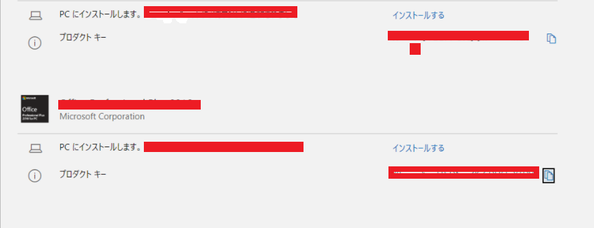 すると、Office を再インストールする用のプロダクトキーが表示されます。